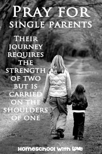 There are many ways that YOU can help single homeschooling parents in your community or online. It could be something as simple as saying a prayer for them. Or you could become more involved and help them with a meal or homeschool materials. Anything that you do will be a HUGE blessing for them.