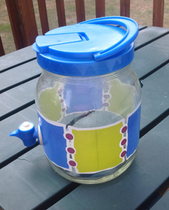 You can use any kind of clear jar with a lid to make sun tea. I used this sun tea jar, but I’ve also used very large canning jars.