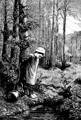 Every morning, Flora had to go almost a quarter of a mile to a clear spring in the wood, and fill the kettles with fresh water. She had a sort of yoke, on which the kettles were hung as she carried them.